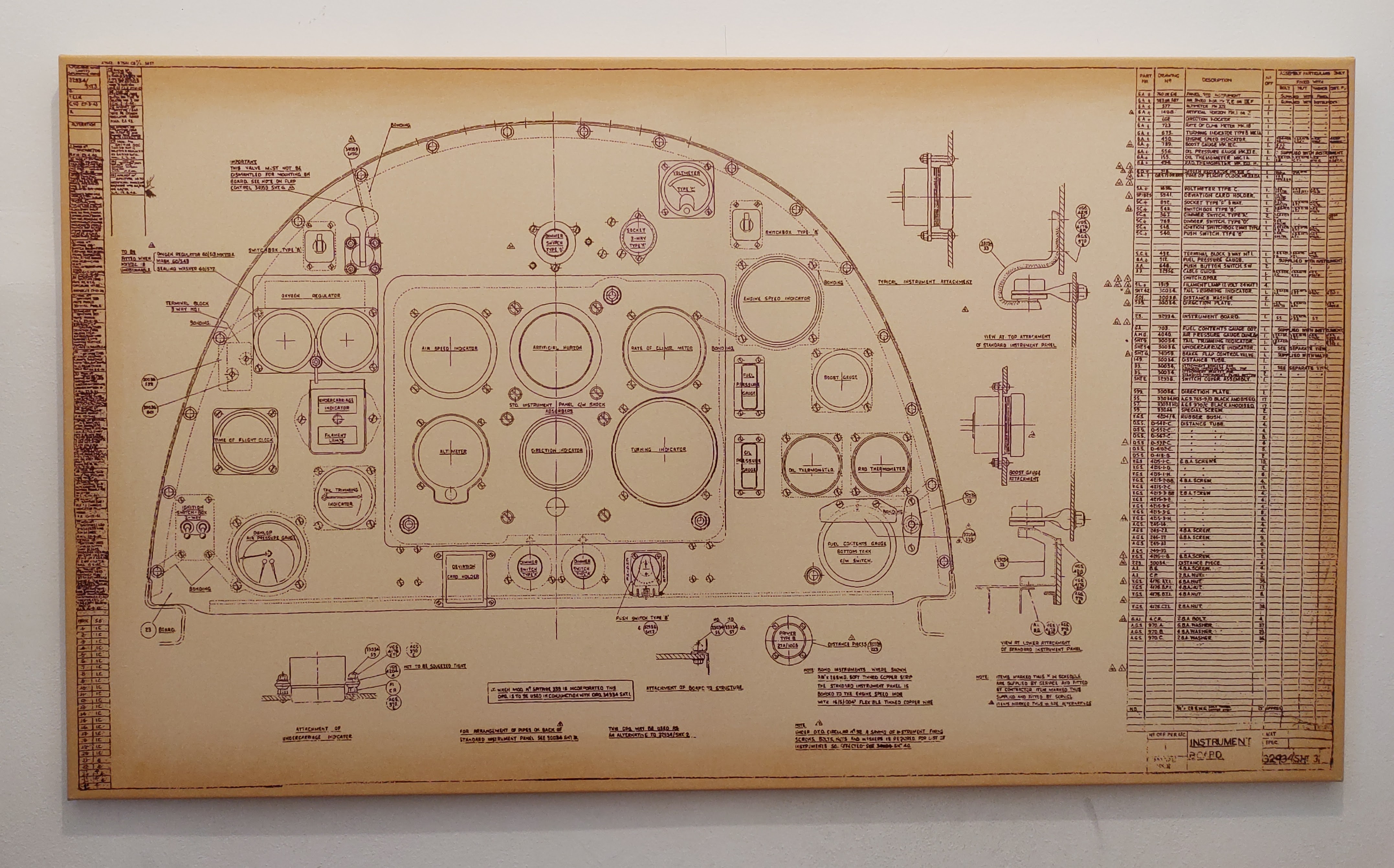 Přínášíme Vám jedinečnou kopii výrobního výkresu přísrojové desky legendárního letounu Supermarine Spitfire Mk.IX
